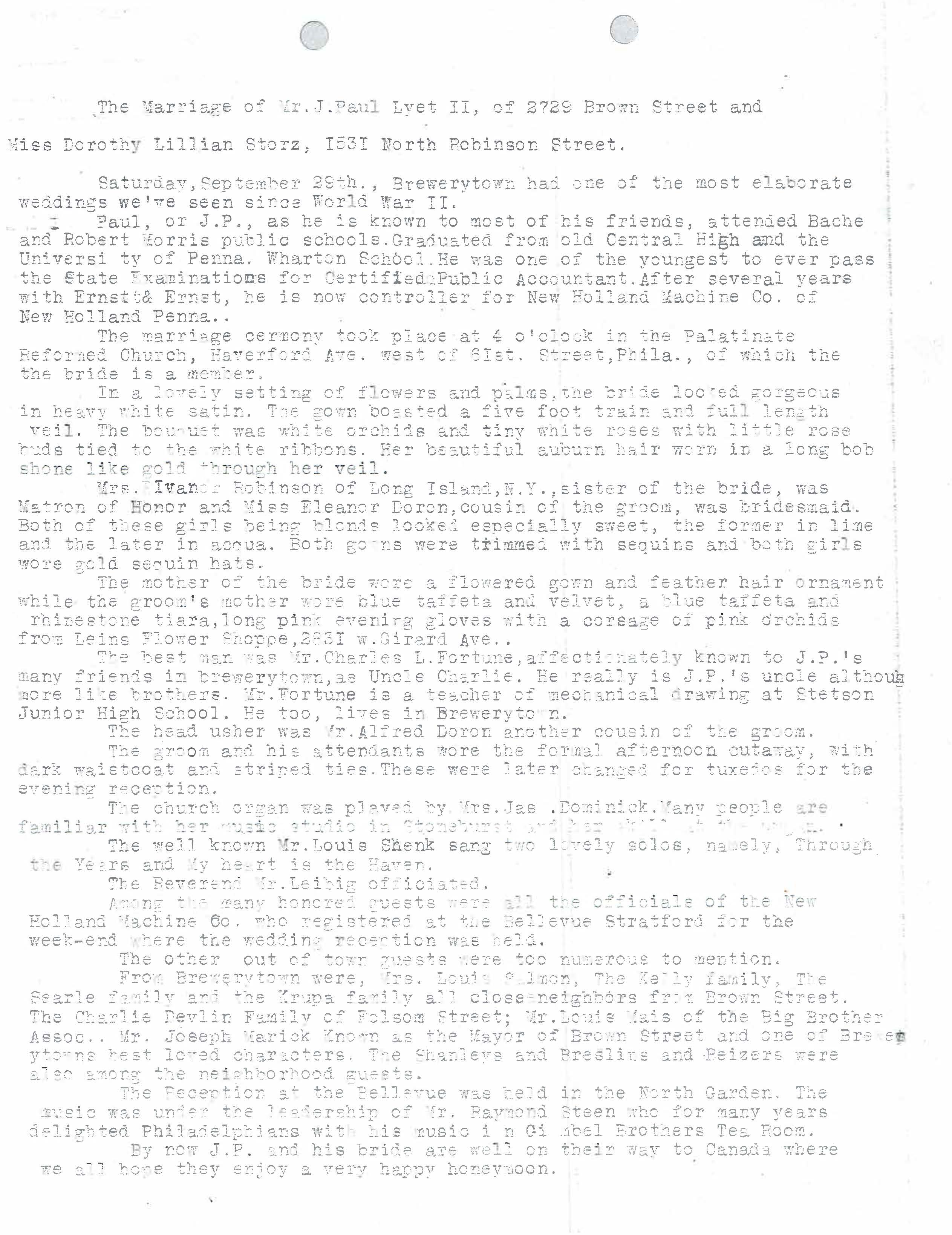 Wedding location of J.P. Lyet II and Dorthy Lyet